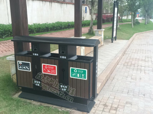 訂購此款G77鋼木垃圾桶是清遠的一家房地產企業,用來改造環境,綠化家園。G77-2三分類塑木垃圾桶的規格為:134*360*1000.所有的五金部分為黑色啞光,裝門的軸采用不銹鋼,不能生銹。內桶為鍍鋅板厚度為0.4mm,塑木按照之前寄給客戶確認過的樣品來制作。經過201#不銹鋼表面烤漆啞光,鋼木防腐,堅固耐用,具有色澤、紋理逼真等特點,與花草樹木搭配成一條自然的風景線。讓人們隨時隨地置身于悠閑環境,感受自然懷抱,呼吸空氣、享受自然生活。