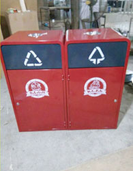 北京傘業制造廠家向我司采購的F145展翅分類垃圾桶,在原有的基礎上面改造而來。下面要介紹一些造型獨特,鋼制垃圾桶產 品規格為:850*390*1000mm。鋼制垃圾桶采用草綠顏色為主題,搭配紅色絲印,著重突出綠色環保,從扔垃圾做起的提示。我司聘請五年以上的老師 傅,采用優質冷軋材料,經過剪鈑下料、折彎、沖壓、焊接、打磨、等工藝:表面經過除油、噴砂防銹處理后,再進行酸洗磷化處理;表面清理干燥后整體進行靜電 噴涂或烤漆處理,靜電噴涂是經過流水線高溫固化爐固化后再出爐冷卻,加工后的塑粉附著力強,不易剝落;我司制造的鋼制垃圾桶,融合工業區環境,讓環境更生 動有色彩。