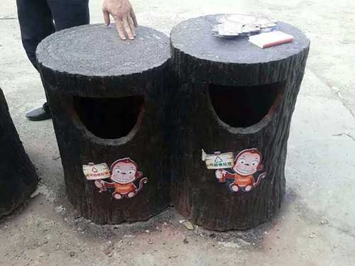 這批玻璃鋼環保垃圾桶各有特色,其中一款為樹洞造型,玻璃鋼環保垃圾桶桶身/內膽/底座采用FRP玻璃鋼材料制造,具有防腐、防盜、防生銹、易清潔等特點,表面涂層采用高分子耐老化膠衣涂層,色澤明快、持久.樹樁造型,大投口更為方便的投放垃圾。漫步林蔭小道中見著這種造型的環保垃圾桶也不失為一種童趣。