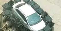 垃圾桶不用來裝垃圾,卻被拿來“圍堵綁架”小轎車