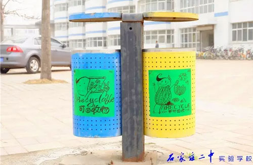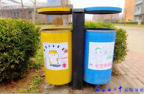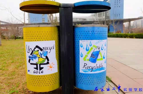 2016年3月18日,石家莊二中實(shí)驗(yàn)學(xué)校2015級(jí)高一11班全體66名同學(xué)利用班級(jí)值周的時(shí)間,手繪百幅垃圾分類(lèi)標(biāo)志,為校園垃圾桶換上了“新裝”。18日上午,高一11班教室內(nèi),66位同學(xué)拿起五顏六色的水彩筆,在紙張上設(shè)計(jì)出各種各樣的“垃圾分類(lèi)”標(biāo)識(shí)和警示語(yǔ),內(nèi)容涵蓋了分類(lèi)標(biāo)志、垃圾擬人、科普漫畫(huà)等,圖面生動(dòng)有趣。次日下午,同學(xué)們又從教室奔向校園每個(gè)角落,將精心繪制的圖案張貼在校內(nèi)所有的垃圾桶上,提醒過(guò)往師生將垃圾分類(lèi),維護(hù)我們共同的家園。