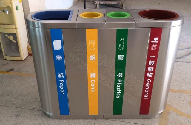 欣方圳商場分類垃圾桶,產品防撞設計,避免高人流時不經意的磕碰對人身造成傷害。