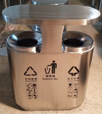 • 使用范圍:不銹鋼地鐵商場分類垃圾桶表面光滑、亮麗,是電梯口、寫字樓、學校、物業、賓館、酒店、機場、汽車站等擺放的首選。