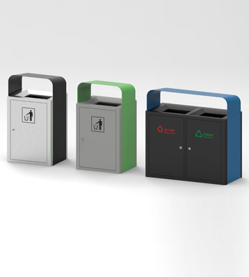 商業街高檔精品垃圾桶采用現代鈑金工藝批量生產精度高,經酸洗磷化長期戶外擺放防銹耐用,可結合商業街空間布置做不同顏色高檔大氣完美搭配。