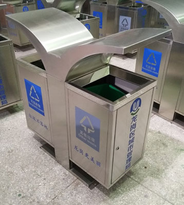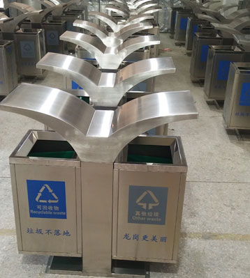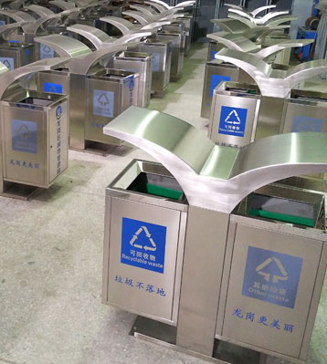 深圳龍崗城管局展翅不銹鋼分類垃圾桶批量生產圖