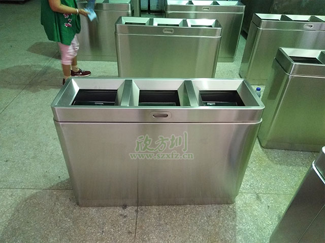 • 使用范圍:欣方圳三分類不銹鋼垃圾桶表面光滑、亮麗,是電梯口、寫字樓、學(xué)校、物業(yè)、賓館、酒店、機(jī)場(chǎng)、汽車站等擺放的首選。