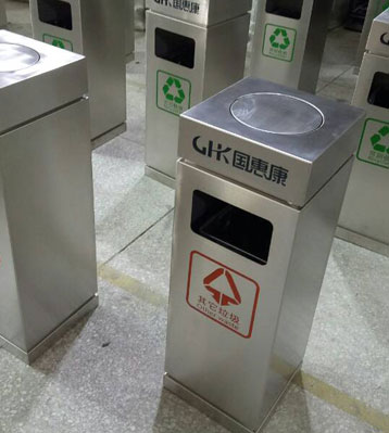 采用厚度1.0MM優質201不銹鋼板材制作,由專業師傅焊接焊點平滑美觀,表面打磨拋光防傷手,邊角圓弧設計防撞擊,絲印商場及垃圾分類標識。