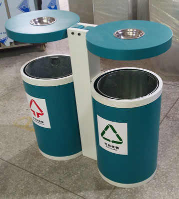 戶外鋼制烤漆分類垃圾桶批量生產圖
