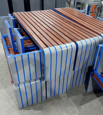 欣方圳不帶靠背戶外休閑椅定制廠家凳面防腐木材質制作流程示意圖,工藝領先,品質卓越,真正經久耐用。