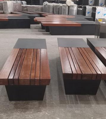 市政景觀提升工程不銹鋼戶外休閑排椅椅面原材料采用真空泵排除空氣、填充防腐液、加壓滲透、抽真空排出多余防腐液達到先進的防腐防蟲工藝。