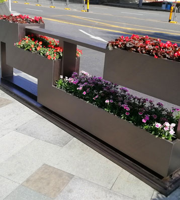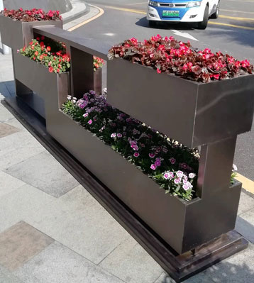 • 產(chǎn)品材質(zhì):不銹鋼道路花箱可采用5mm加厚201#/202#/304#不銹鋼材料模壓或焊接成型,金屬亮澤,內(nèi)外表面光潔,易于清潔,表面可做電鍍壓紋、水鍍、蝕刻、納米鎳、無氰堿性光亮鍍銅工藝效果,無指紋處理高檔大氣;