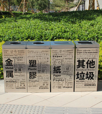 多國文字組合式不銹鋼分類垃圾桶