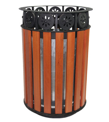 欣方圳公園花邊鋼木單桶垃圾桶產品展示圖