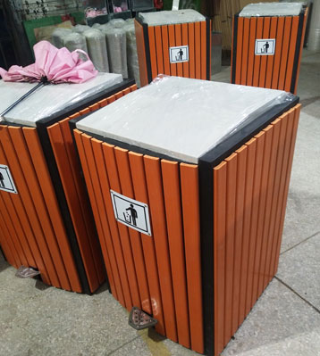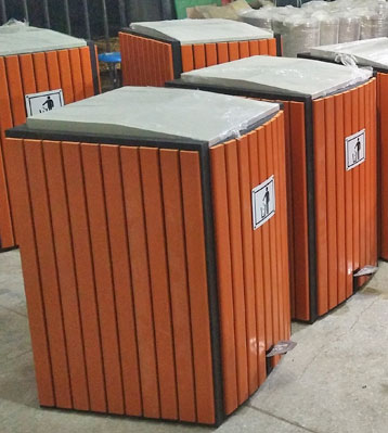 戶外鋼木腳踏式垃圾桶工廠生產圖