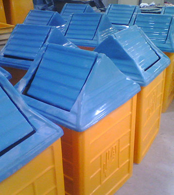 玻璃鋼搖蓋垃圾桶桶身和內(nèi)膽部分,采用高級(jí)玻璃鋼材質(zhì)一次成型,經(jīng)過打磨、除塵 、噴漆等一系列后期工藝然后出成品。