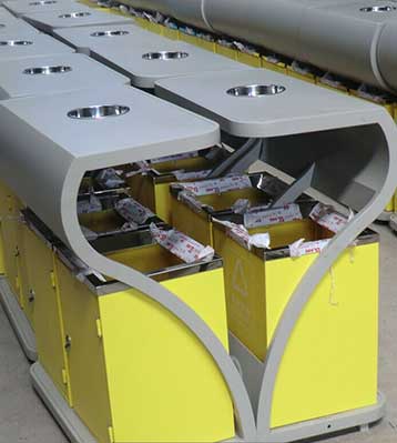 欣方圳戶外分類垃圾桶頂蓋圓弧設計,避免積水,邊緣圓弧處理避免撞傷,同時起到美觀作用!
