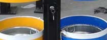 鋼制烤漆桶身可做藍、黃色兩分類高溫烤漆,也可做淺灰色整體單色烤漆,款式上圓形沖孔設計,有利通風透氣保持內桶干爽,有效保護內桶防銹蝕。