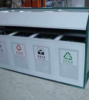 江西南昌一體式鋅板沖孔烤漆室外四分類垃圾桶