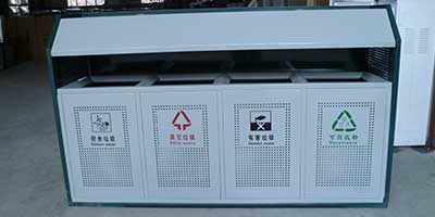 江西南昌園林綠化工程公司在室外分類垃圾桶的選擇上,采購的是當下流行的可回收物、其他垃圾、廚余垃圾、有害垃圾組成的4分法垃圾收集容器。鍍鋅板...